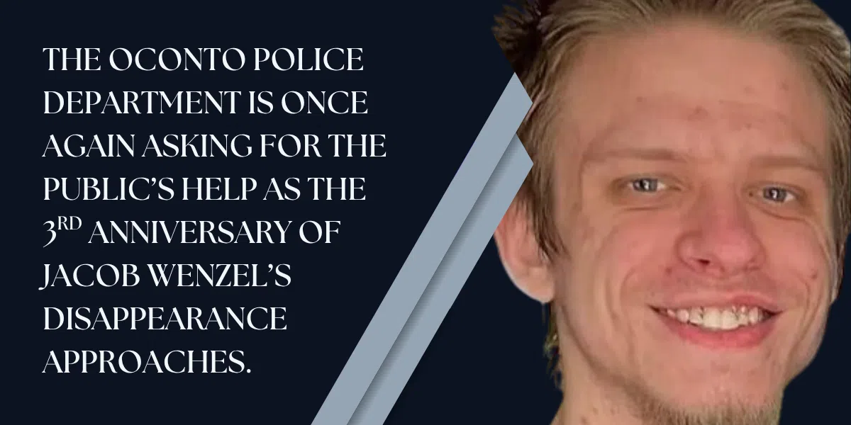 THE OCONTO POLICE DEPARTRMENT IS ONCE AGAIN ASKING FOR THE PUBLIC'S HELP AS THE THIRD ANNIVERSARY OF JACOB WENZEL'S DISAPPEARANCE APPROACHES.