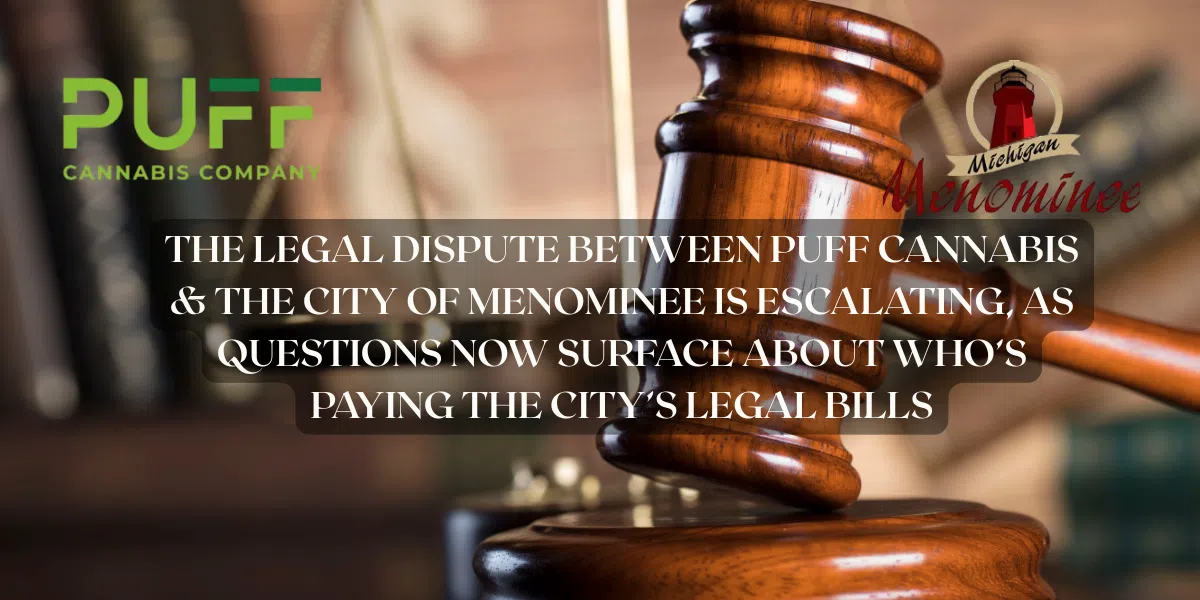 THE LEGAL DISPUTE BETWEEN PUFF CANNABIS AND THE CITY OF MENOMINEE IS ESCALATING, AS QUESTIONS NOW SURFACE ABOUT WHO'S PAYING THE CITY'S LEGAL BILLS
