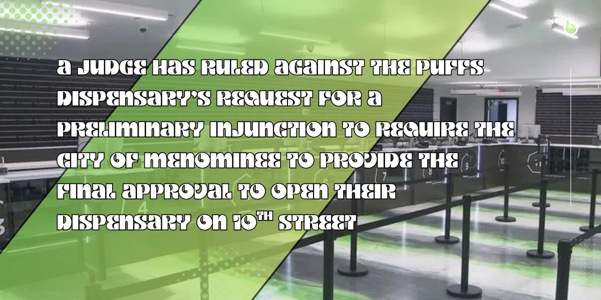 A judge has ruled against the Puffs Dispensary’s request for a preliminary injunction to require the city of Menominee to provide the final approval to open their dispensary on 10th street.