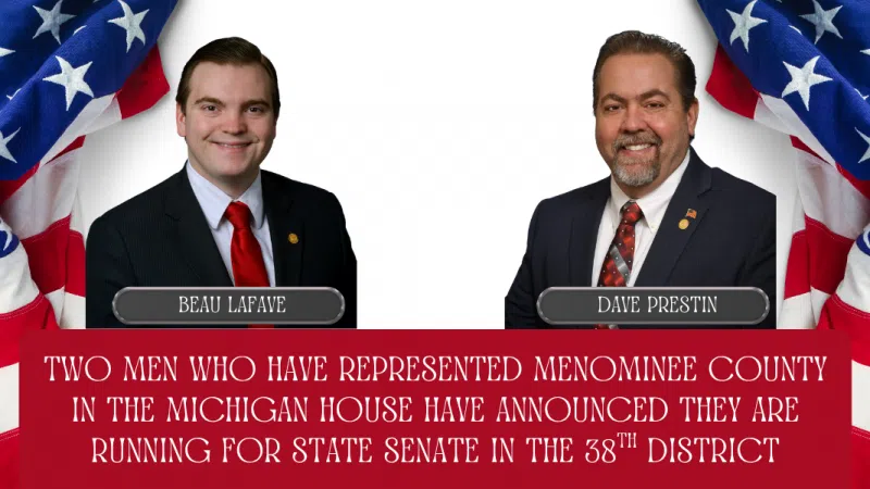 TWO MEN WHO HAVE REPRESENTED MENOMINEE COUNTY IN THE MICHIGAN HOUSE HAVE ANNOUNCED THEY ARE RUNNING FOR STATE SENATE IN THE 38TH DISTRICT