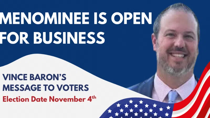 MENOMINEE IS OPEN FOR BUSINESS: VINCE BARON'S MESSAGE TO VOTERS